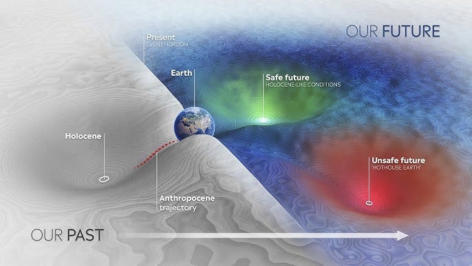 Philosophiquement, ce thème d’une planète s’éveillant à la conscience de soi dissout le système poussiéreux des Etats-nations. Il plonge ses racines dans le cosmisme russe du XIXe siècle, dans la noosphère de Vernadski et Teilhard de Chardin, dans la pensée gaïenne de James Lovelock au XXe siècle et se prolonge sous la plume d’accélérationnistes comme le designer Benjamin Bratton. Aujourd’hui, on en trouve un exemple dans le livre Children of a Modest Star. Ses deux auteurs, Jonathan Blake et Nils Gilman, estiment que nous sommes dans un état nouveau - le « Planétaire » - et que la Terre, grâce à une étendue toujours plus fine de capteurs et à l’approfondissement de nos connaissances, a atteint une forme de sagesse, de « sapience », qui nécessite une gouvernance plus ajustée. Ce champ de recherches ne cesse de grandir - par exemple autour de l’Earth System Governance Project - et se débat avec deux problèmes majeurs : comment concilier la technocratie scientifique qu’entraîne l’anticipation des points de bascule avec notre ethos démocratique ? comment s’imprégner de cette « sapience » sans retomber dans l’illusion de contrôle des Modernes ?