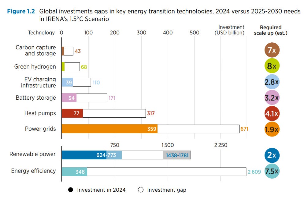 Comment continuer à soutenir les technologies bas-carbone ? Les capitaux continuent d’affluer – ils ont doublé entre 2015 et 2024 –, mais beaucoup craignent que ces chiffres soient un trompe-l’oeil. D’une part, les investissements restent tirés par la Chine. D’autre part, on observe un ralentissement de la croissance : 7% en 2024 après un bond de 32% en 2023. Surtout, ces sommes restent insuffisantes au regard de nos objectifs. Selon l’Agence internationale pour les énergies renouvelables (IRENA), les « niveaux d’investissement actuels dans les renouvelables représentent la moitié de ce qui est nécessaire pour tripler la capacité de ces énergies d’ici 2030 ».