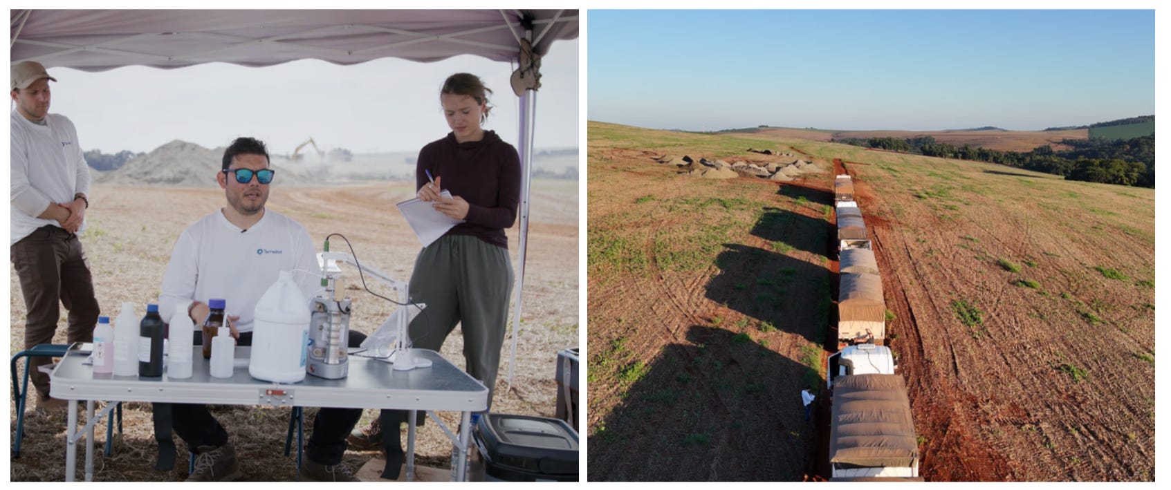 Fondée en 2022 à Stanford, Terradot se spécialise dans l’altération forcée. L’eau de pluie acidifiée par le CO₂ de l’air ruisselle sur des roches et libère des ions bicarbonates (qui rejoignent ensuite la mer). Pour amplifier ce phénomène, la start-up, qui vient de lever 58 millions de dollars auprès de Frontier et de Microsoft, veut récupérer des déchets de mine broyés et les répandre sur des surfaces agricoles (ce qui augmente la surface de réaction chimique).