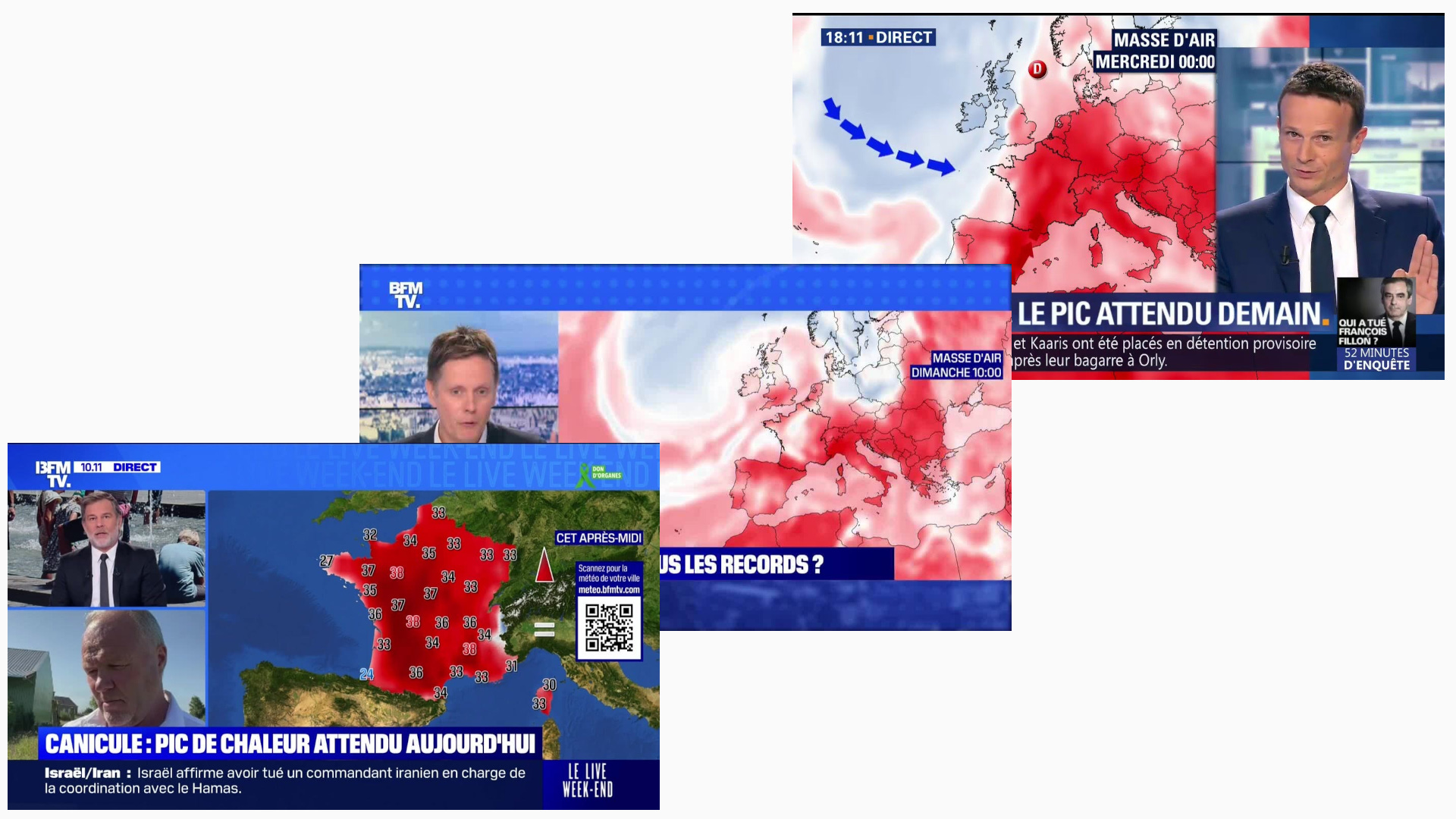 L’historien Dipesh Chakrabarty aime à souligner qu’en sortant du sol les combustibles fossiles qui s’y étaient accumulés pendant des millions d’années, nous avons fait se rapprocher les temps géologiques – très longs – des temps humains – très rapides. C’est ce rapprochement qui ferait à la fois l’originalité et l’horreur de l’Anthropocène. Le militant Bill McKibben souscrit à cette analyse, mais estime qu’« en termes journalistiques, la crise climatique se produit juste un peu trop lentement ». Les sujets « climat » sont sans cesse chassés par d’autres évènements, qui, bien qu’ils soient liés à l’écologie (Ukraine, Trump, les bouchons au péage de Saint-Arnoult, etc), ne sont pas encodés comme tel. L’avantage des percées saisonnières de la canicule et des feux de forêt est donc de faire remonter le réchauffement en haut de la pile.
