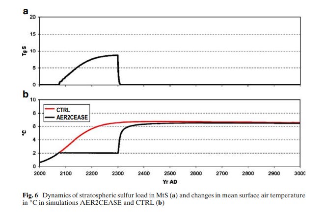 Avant de venir aux arguments des géo-ingénieurs, voyons comment s’est déployée cette inquiétude. En 2006, quand le chimiste Paul Crutzen publie son célèbre article qui met fin au tabou de la géo-ingénierie solaire, il ne semble pas envisager ce problème, insistant même sur le caractère réversible d’une telle intervention : « Elle pourrait être interrompue à court terme, si des effets secondaires indésirables et imprévus se manifestaient. » C’est dans les années suivantes que le thème se développe. Dans sa célèbre liste des « vingt raisons qui lui font penser que la géo-ingénierie solaire pourrait être une mauvaise idée », le climatologue Alan Robock y consacre les points 10 (« Rapid warming if deployment stops ») et 11 (« There’s no going back »). Plusieurs études insistent alors sur la rapidité avec laquelle, en cas d’arrêt du voile solaire, les températures bondiraient. Certains évoquent une vitesse de réchauffement « jusqu'à vingt fois supérieurs au taux actuel ». D’autres parlent d’une vélocité « beaucoup plus rapide que l'un des événements de réchauffement planétaire les plus brusques […] enregistrés dans l'histoire géologique », à savoir le Maximum Thermique du Paléocène-Éocène. Il y a environ 55 millions d'années, les températures ont augmenté de 5 à 8°C en quelques milliers d'années.
