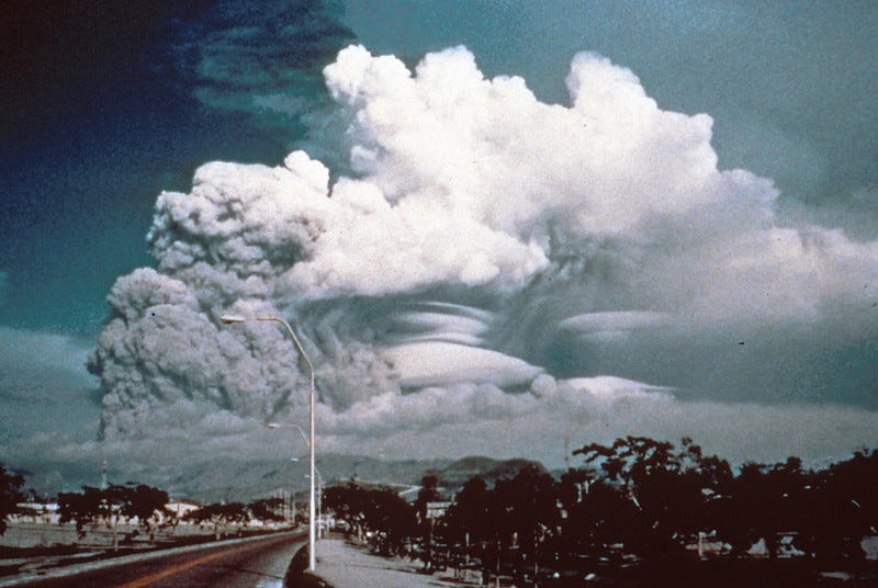 Nous en sommes donc là. Pour les partisans de la recherche sur la géo-ingénierie, cette situation est incompréhensible. Mettez-vous à leur place. Nous libérons déjà des quantités gigantesques de soufre et autres gaz à travers les rejets industriels. En comparaison, leurs expériences seraient négligeables, « des milliers à des milliards de fois plus petites » qu’une intervention qui aurait un effet climatique détectable. Rien à voir entre les quelques grammes prévus par SCoPEx ou ARIA et les millions de tonnes de dioxyde de soufre relâchées par le Pinatubo.